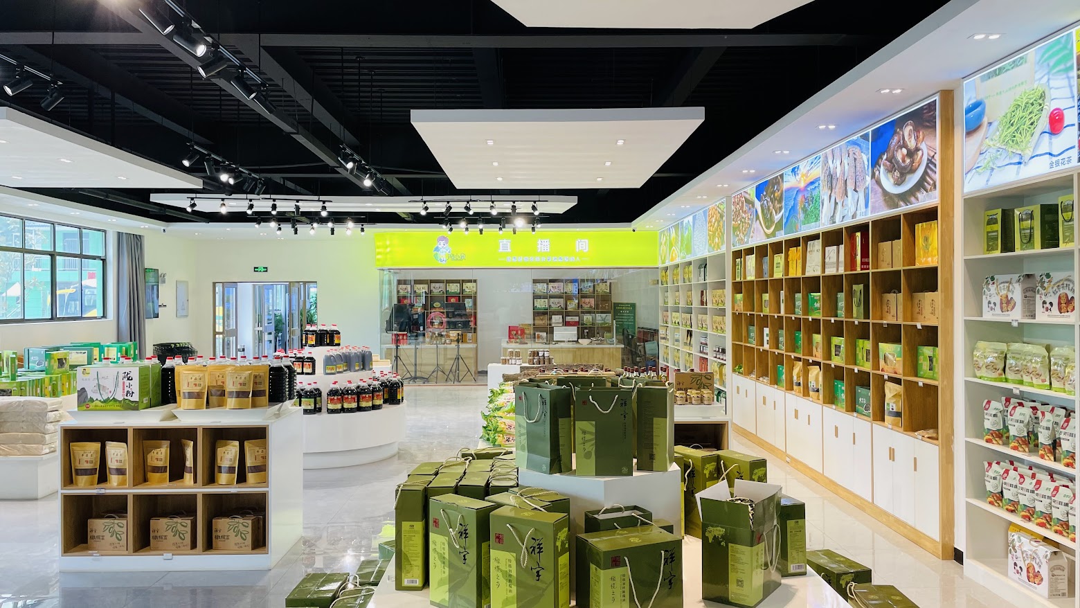 Then, we proceeded to visit Wudu District E-commerce Industrial Agglomeration Zone or the Longnan e-commerce platform industry cluster, which goes beyond being just a physical structure; it serves as an entrepreneurial ecosystem. The facility is an integrated e-commerce industrial cluster that supports rural revitalization by providing industrial, business model, and talent support. The first floor is dedicated to the sales area of characteristic industrial products mainly from Longnan, as well as a shared warehousing and distribution area for local deliveries. The second floor serves as an incubation area for cross-border business services, live-stream e-commerce platforms, and supply chain operations for characteristic industries. Floors three to five are individualized incubation and office operation areas for enterprises.