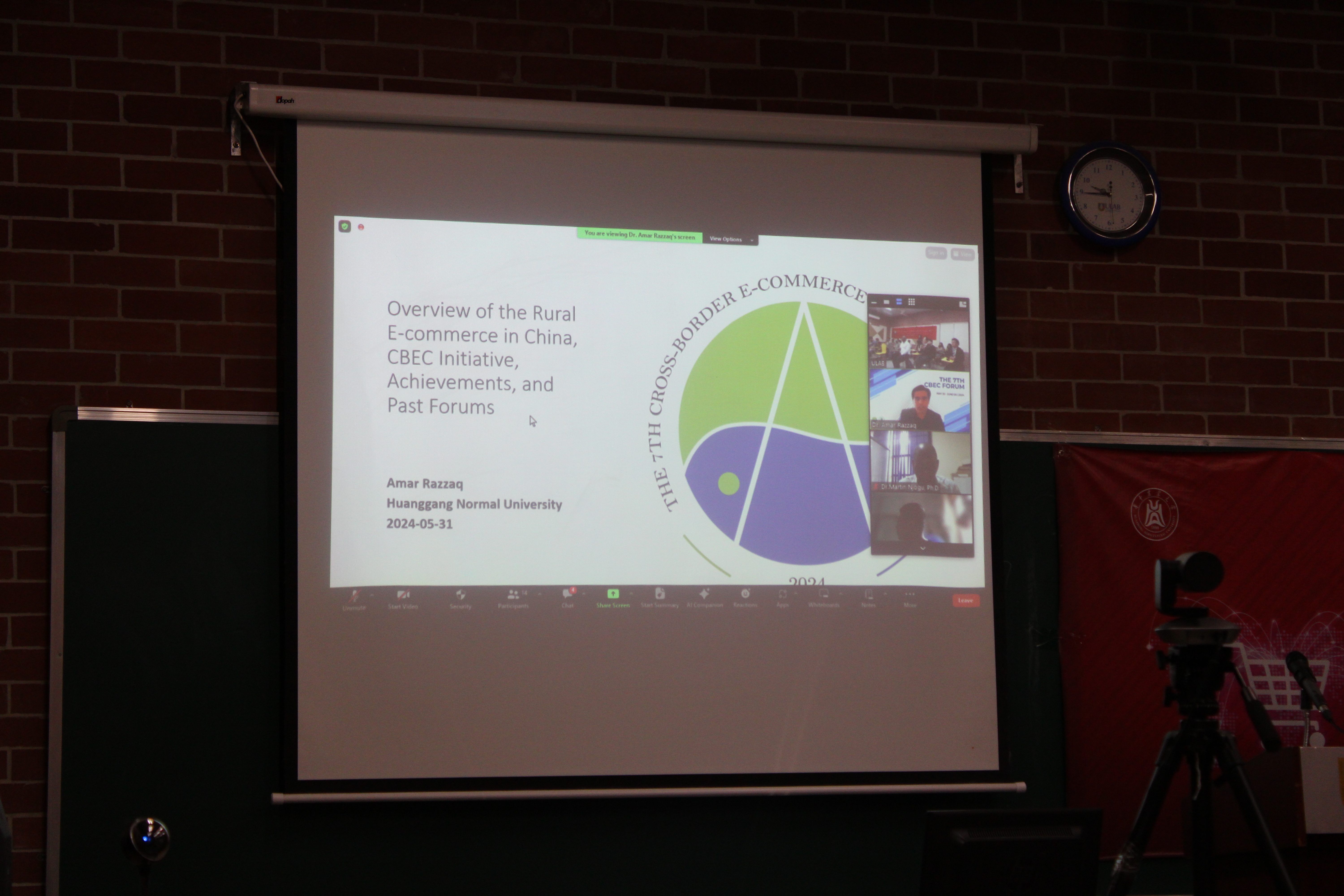 Dr. Amar Razzaq, Associate Professor at Huanggang Normal University, presented a comprehensive overview of the rural e-commerce landscape in China and the CBEC initiative. He began by highlighting the significant growth of e-commerce in rural areas, with an internet penetration rate of 34% (accounting for 26.7% of total internet users) and rural online retail sales exceeding 143 billion US$ (17.4% of total retail sales). Dr. Razzaq also noted that agricultural products online retail sales reached 30.7 billion US$, accounting for about 18% of total rural retail sales.