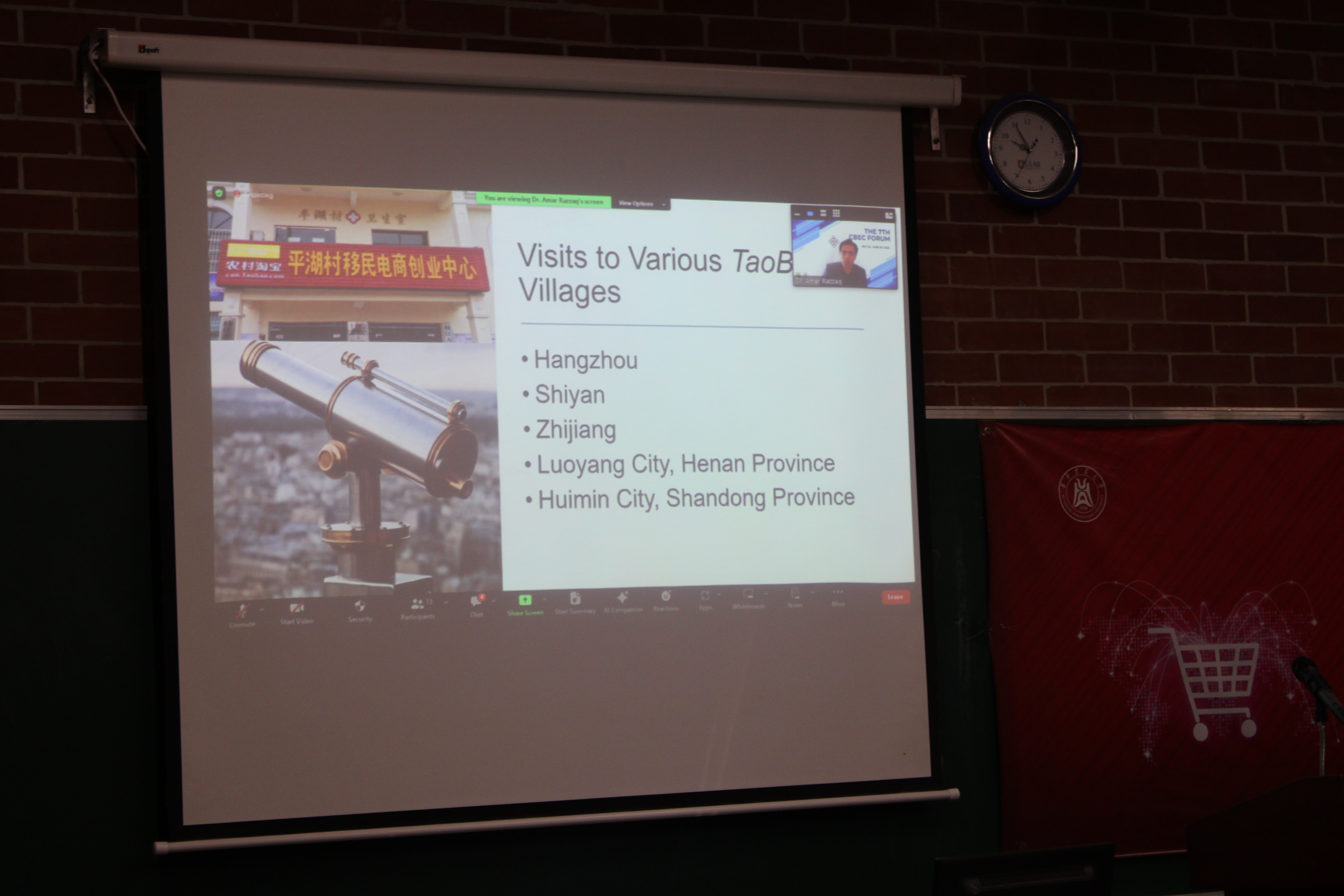 Dr. Razzaq then introduced the "Taobao Village" model, a government and Alibaba-backed initiative aimed at promoting e-commerce in rural areas. He explained that a Taobao Village is characterized by residents spontaneously engaging in e-commerce primarily through the Taobao Marketplace, with a total annual e-commerce transaction volume of at least RMB 10 million (~US$ 1.43 million) and at least 10% of village households actively participating in e-commerce or having at least 100 active online shops. Dr. Razzaq emphasized the success of the Taobao Village model in catalyzing industry clusters in rural areas.