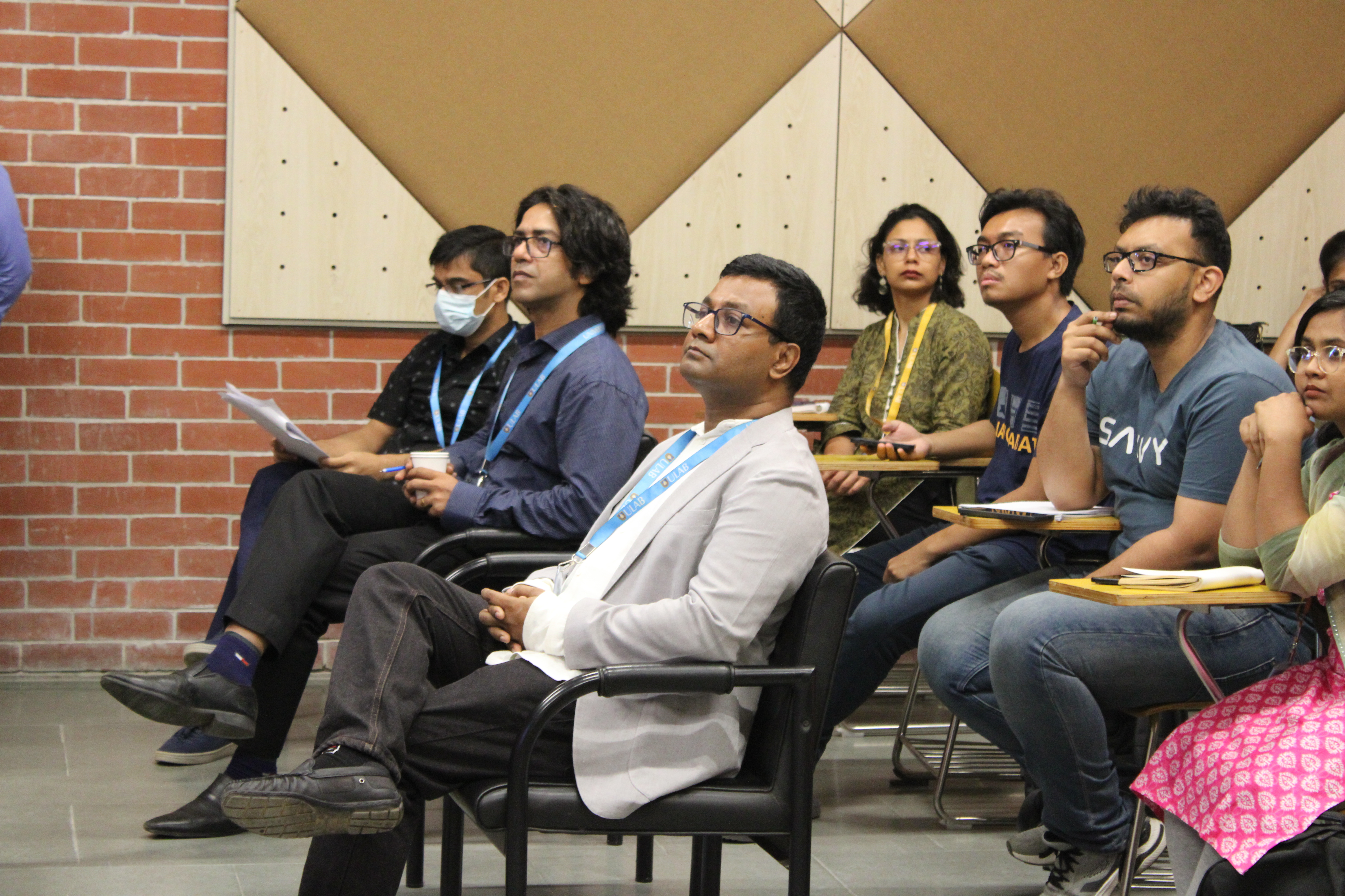 Dr. Kader emphasized that the CDS project focuses on improving the critical thinking, communication skills, and digital literacy of the participants. He then shared an example of a recent project conducted with the Santal community, one of the largest ethnic communities in Bangladesh, located in the Peerganj area. Dr. Kader and his co-researcher, Dr. Jude, along with their team, visited the community and engaged with the local people, teaching them digital skills and storytelling techniques. The participants included students, working individuals, female football players, and community members who had to discontinue their education due to financial constraints.