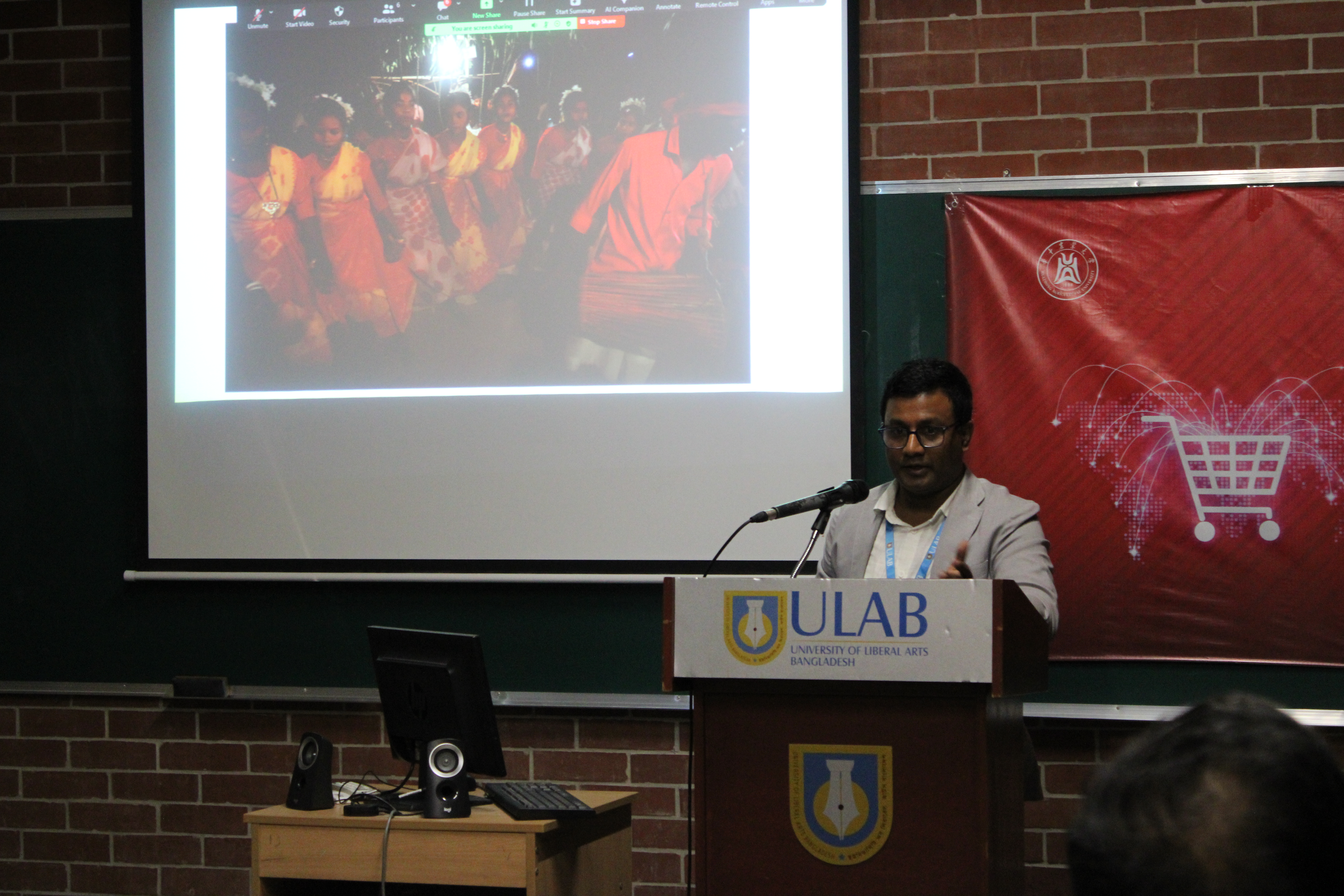 Prof. Williams then discussed the theme of the forum, "Sustainable E-commerce through New Media and Microfinance Innovations," discussing the need to address the environmental and social impacts of the rapidly growing e-commerce sector. He highlighted the role of new media in promoting sustainability by increasing consumer education and awareness, making companies more transparent and accountable, and fostering community building and support. Prof. Williams cited the example of ULAB's own organic tea brand, Kashi and Kasity, which demonstrates transparency in its production processes and community engagement initiatives.