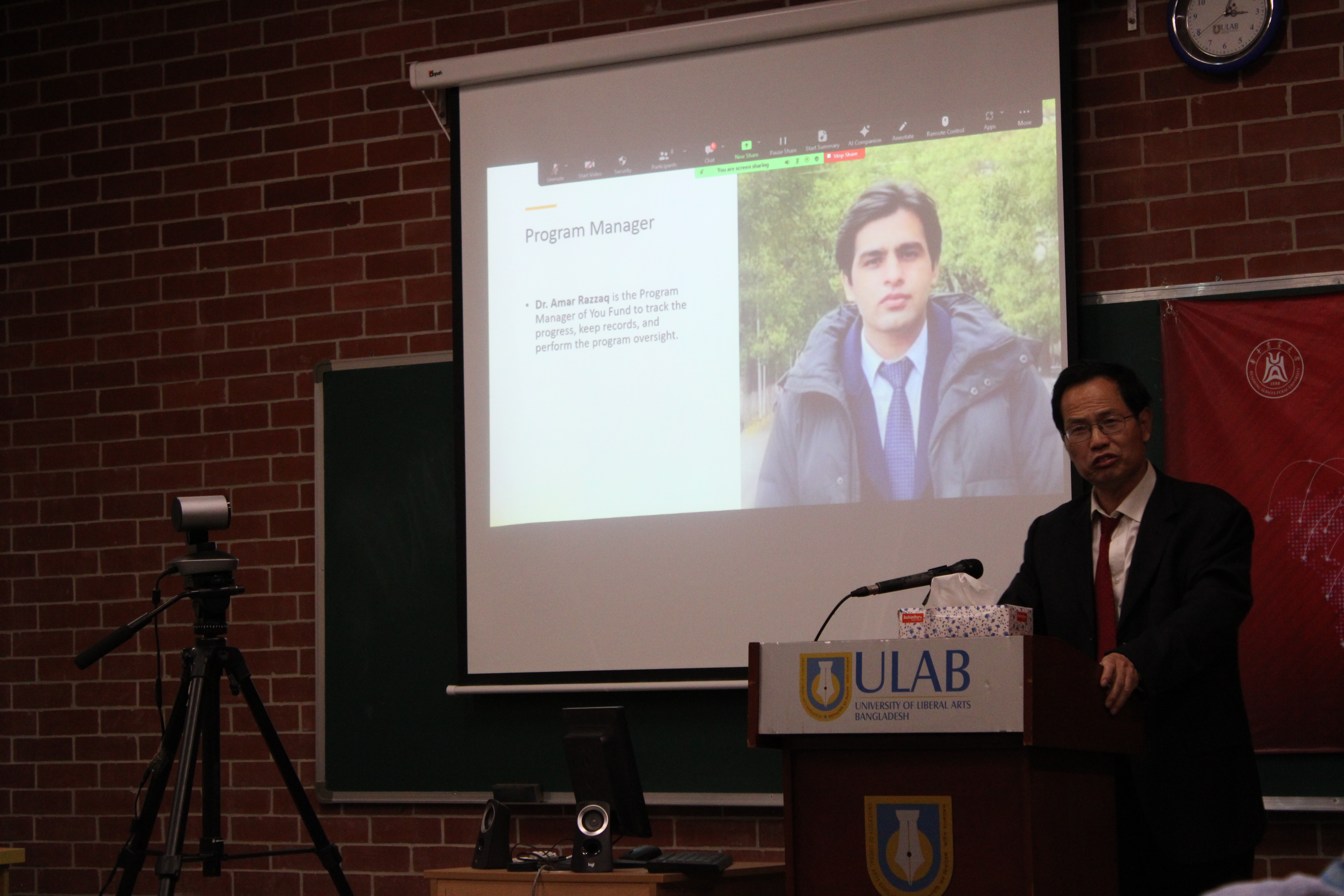 Professor Zhou then announced that Dr. Amar Razzaq, an Associate Professor at Huanggang Normal University and a close friend of his, would serve as the Program Manager of the YOU Fund. He explained that Dr. Amar Razzaq's role would involve tracking the progress of the fund, keeping records, and performing program oversight. Professor Zhou expressed his confidence in Dr. Amar Razzaq's abilities, citing his expertise in writing and his position as the Editor-in-Chief of the Journal of Entrepreneurship for Sustainability.