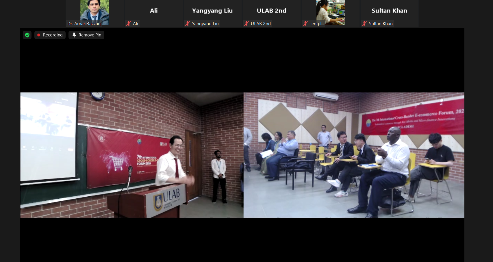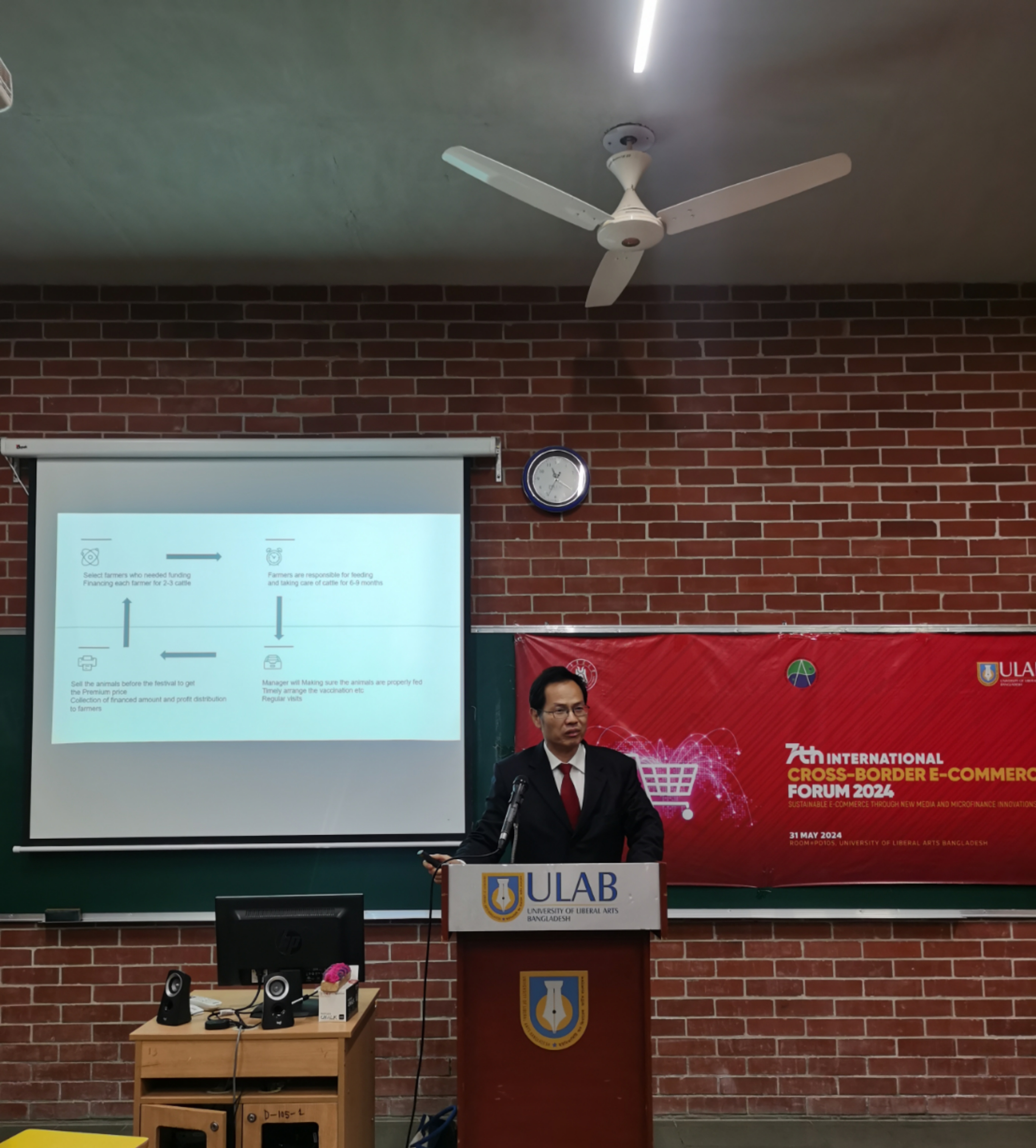 The 7th International Cross-Border E-commerce Forum (CBEC) 2024, co-hosted by University of Liberal Arts Bangladesh (ULAB) and Huazhong Agricultural University, commenced on May 30th, 2024 at the ULAB campus in Dhaka. The forum aimed to promote sustainable micro-finance initiatives, launch the YOU Fund, and strengthen e-commerce cooperation between China and Bangladesh. The event brought together researchers, academics, business professionals, and key stakeholders from China, Bangladesh, and other countries along the Belt and Road Initiative.