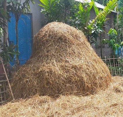 Due to low milk production most of the farmers in this community relied on small scale rice production and being involved in provision of farm labour at 600 Taka per day. It was noted that some women had borrowed money from Grameen Bank ranging from 10000 to 20000 Taka payable within 12 months (1 year) which was mainly used for family livelihood but not starting business. the earning from the community which ranged upto about 20000 Taka per month was used to repay the loan form Grameen bank and therefore there was no default of the repayment which was repaid at 10% and on reducing balance. This community was also observed to use cattle dung for making dung sticks used as fire wood and also had energy saving fire places, and also they conserved rice straw and corn stalks among others in form of cone shaped hay heaps.
