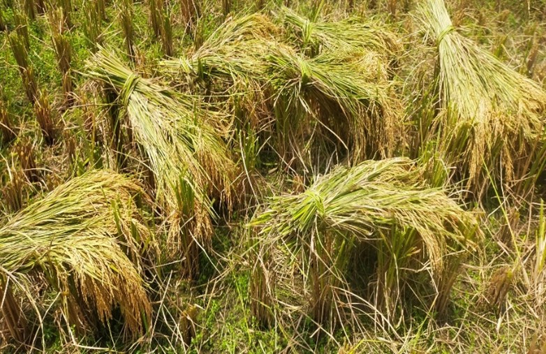 Harvested rice tied into bands to allow manual threshing