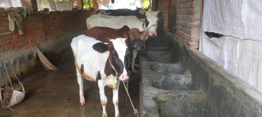 The community keeping high yielding dairy cattle had very beautiful cows and they were supported by BRAC bank which gave them loans to purchase the animals and also they bought the milk from the farmers. The loans ranged from 250000 Taka and was used to strengthen the dairy enterprise. One dairy animal was producing upto 25-30 litres of milk per day. The cattle were also housed in well-constructed and maintained structures.