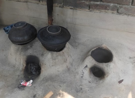 Energy saving cooking areas and big cone shaped hay heaps