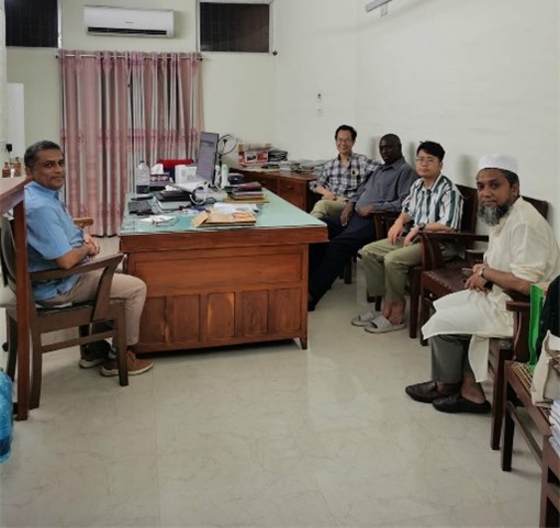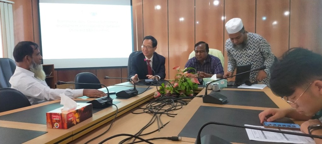 The team consisting of Professor Zhou Deyi, Professor Geofrey Gathungu, Mr. Chen Zhilin and Mr. Li Gen arrived at BAU’s International Guest House from Dhaka using a taxi in the afternoon of 3rd June and was received by Prof. Salauddin Palash. After refreshments the team took a tour of the campus and they took dinner and other meals at the Pine and Dine Restaurant of BAU which is reserved for Lecturers. The team also visited Prof. Mohammad Jahangir Alam and took time to discuss the areas of possible collaboration in area of microfinance.