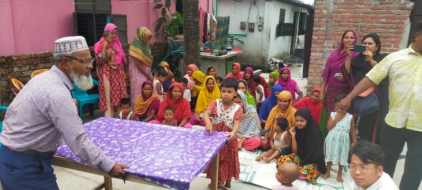 The community and Ms Chandana the chairlady at the centre with Tafshirul, Zhou Deyi, Geofrey Gathungu, and a local ULAB history Professor